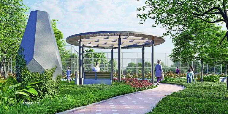 At the very heart of this development lies a grand central park, a refreshing green sanctuary. Wherever you look, nature greets you—with flowering gardens, expansive lawns, elegant social spaces, and tranquil shaded seating—offering a perfect blend of serenity and sophistication.